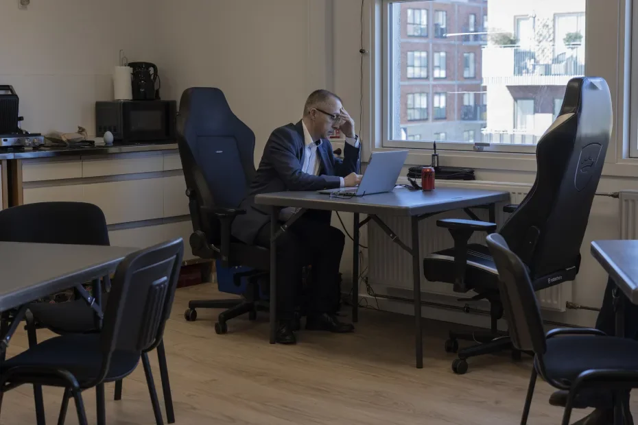 »Jeg har et øje for gode tilbud på udstyr, jeg kan planlægge og lave aftaler med trænerne, så de synes, at det er rart at være her. Og så kan jeg få ting til at ske,« siger han og læner sig tilbage i en gamerstol ved et plastikbord i fællesrummet, der fungerer som hans kontor.